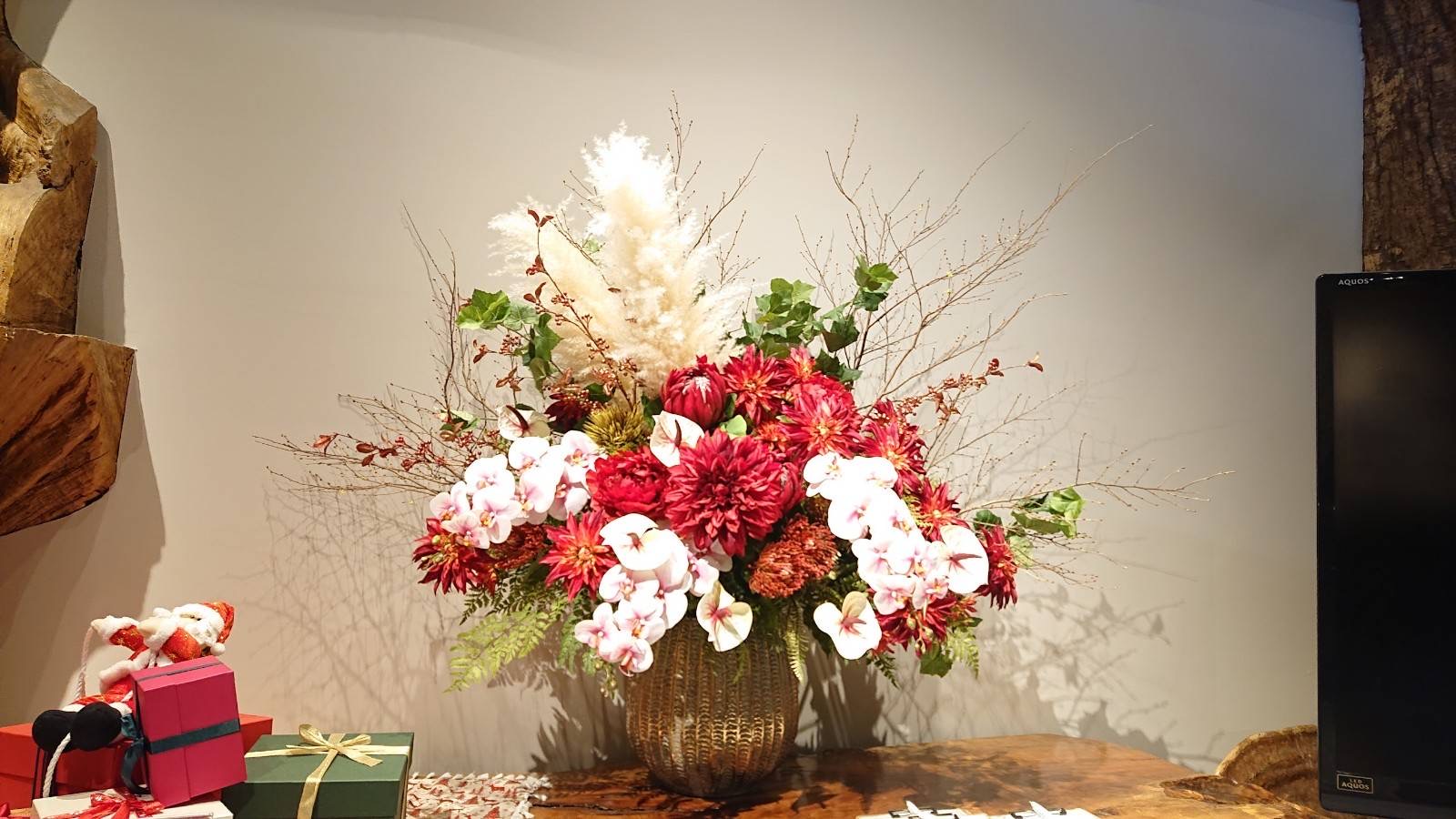 開店祝いに造花のアレンジメント
