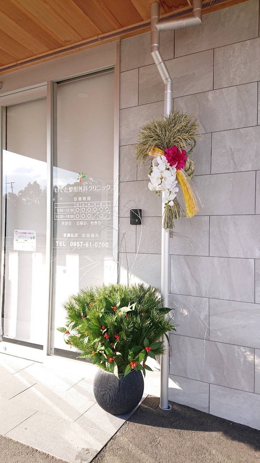 病院の玄関にお正月の飾りを